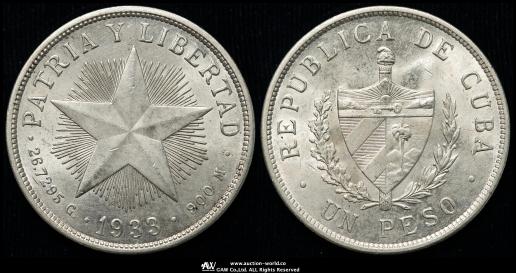CUBA キューバ Peso 1933 AU~UNC