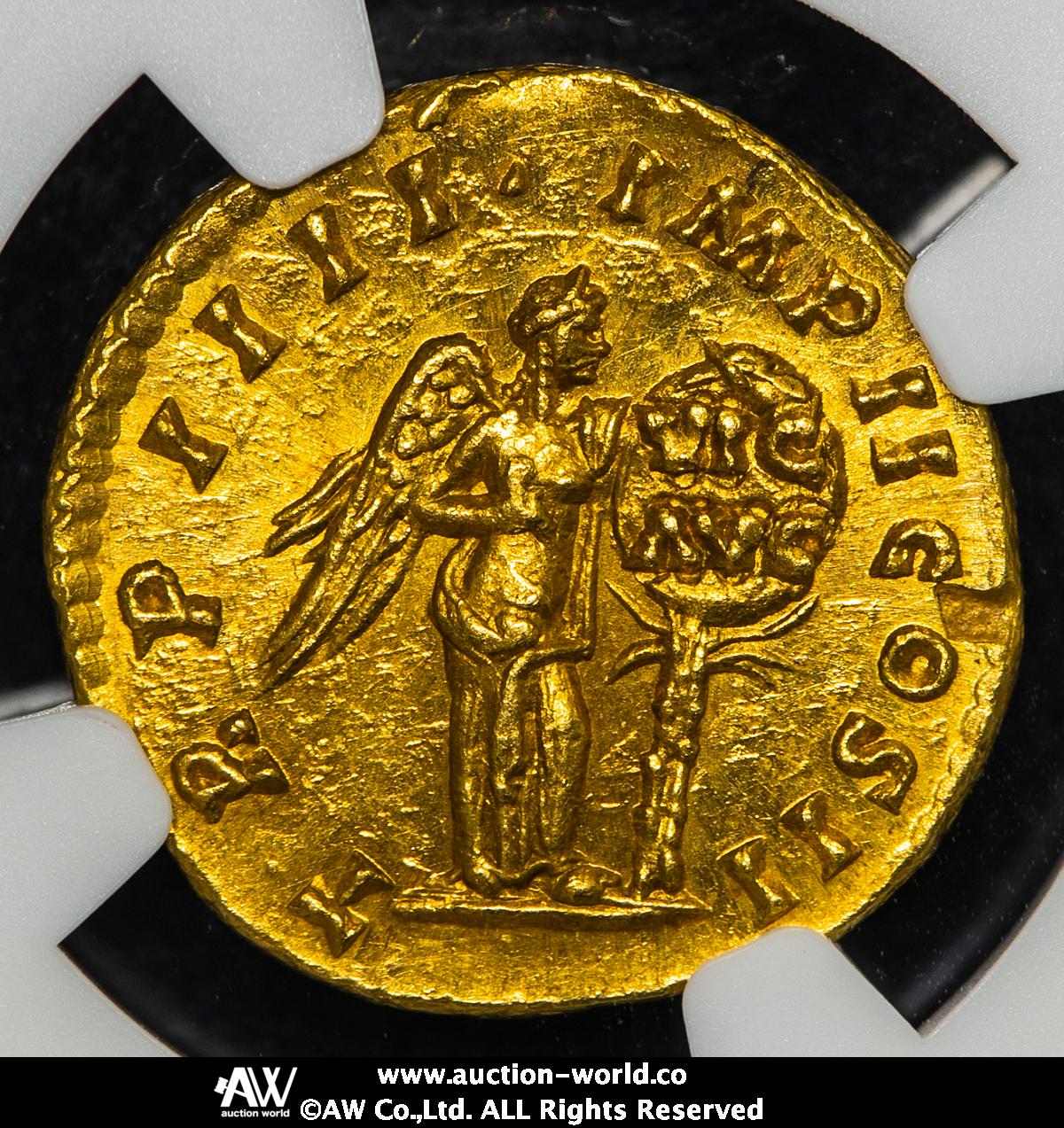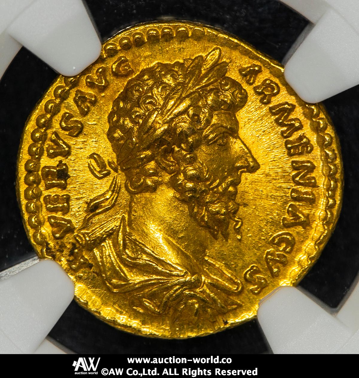 | 説明 : | 皇帝右向き胸像/左足をグローブに置き、ヤシの樹に置いた”VIC AVG”と記された盾に向かうヴィクトリー Fr-318 S-5338 Bmcre-296 Calicó-2177type RIC-525 ローマ鋳(AD163~164) ほぼ完璧な激レアコンディション (7.35g) ⓇⓇ NGC-Ch MS“Strike5/5 Surface4/5 Fine Style, flan flaw” |